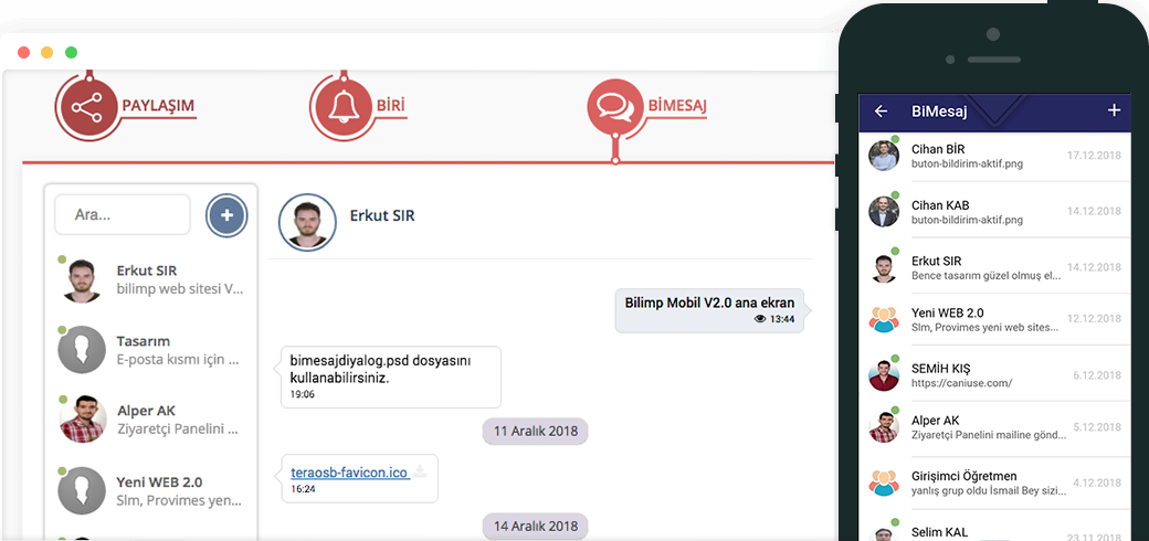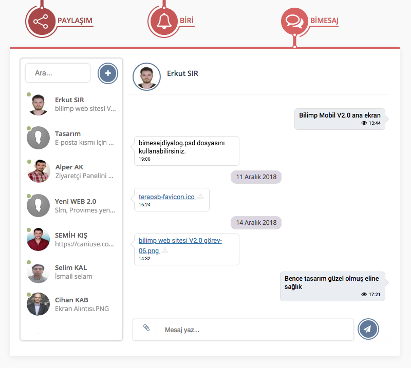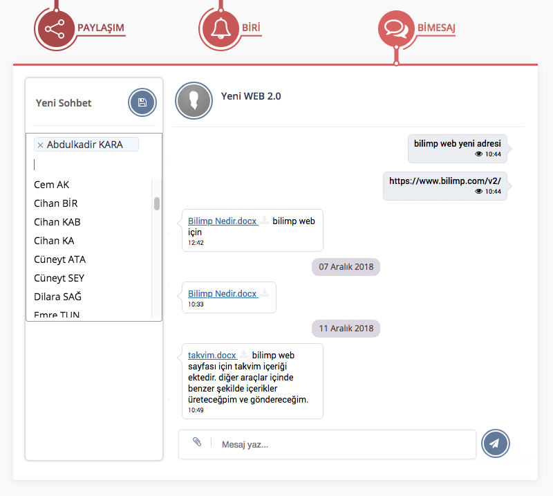 Yazı ve Tablo araçlarında oluşturduğunuz belgeleri bimesaj üzerinden kişilere veya gruplara doğrudan iletin.