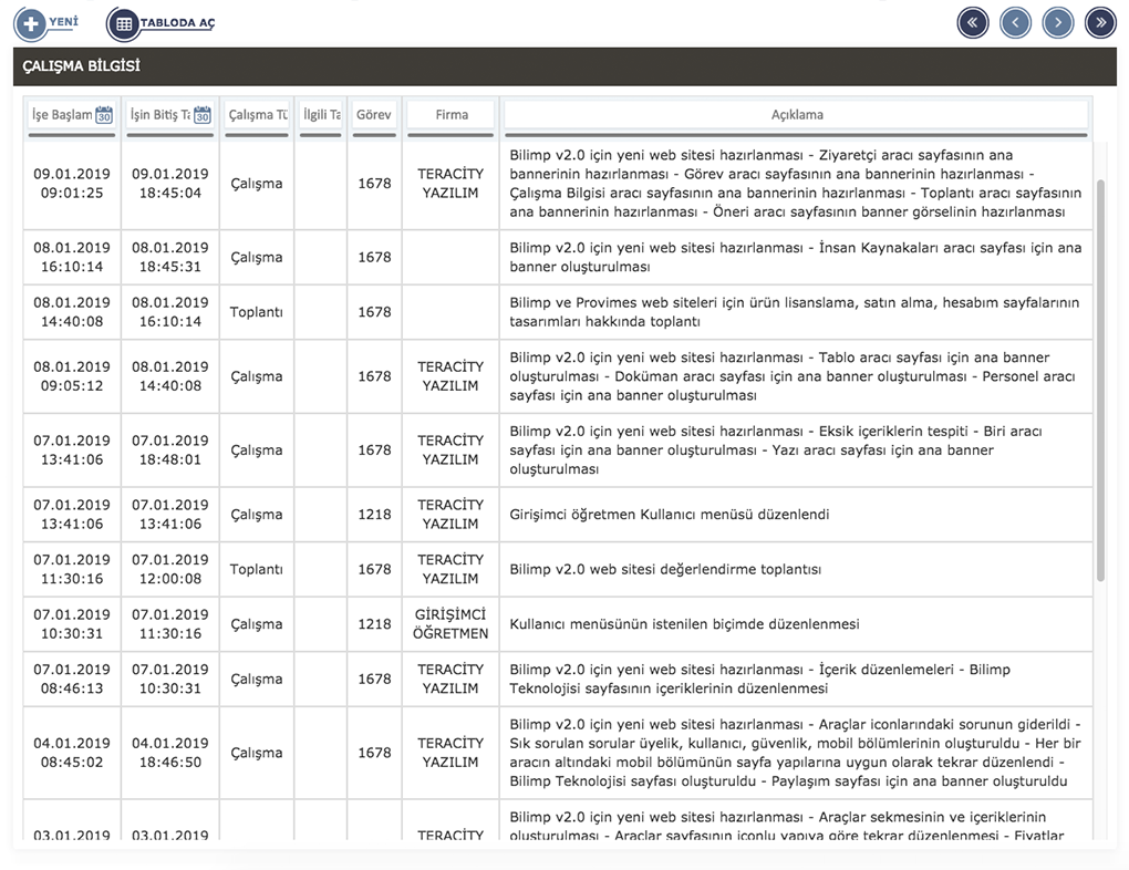 Geriye dönük çalışma bilgisi kayıtlarından herhangi bir tarihte veya bir firma ile ilgili yaptığınız çalışmanın ayrıntılarına kolayca ulaşın.