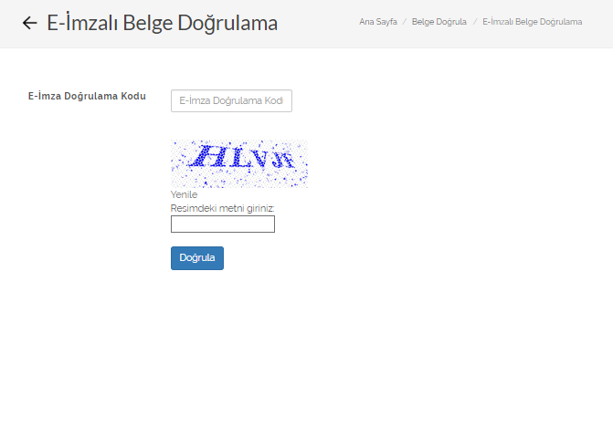 Doğrulama işlemi için evrak numarasını ve ekrandaki resim doğrulama kodunu girmeniz yeterli olacaktır.