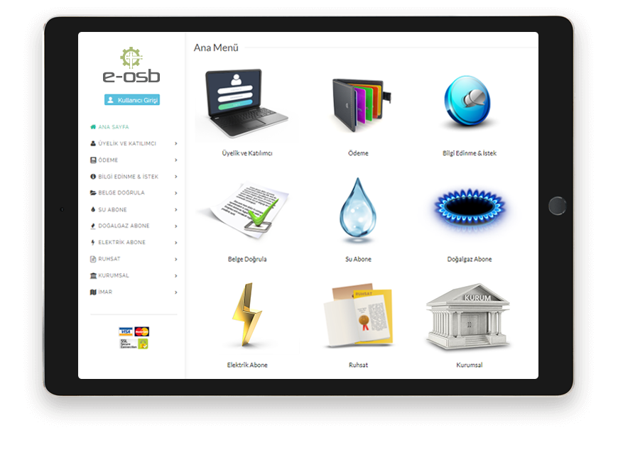 Üyelik girişi yaparak su, elektrik ve doğalgaz borçlarını sorgulayabilir, geçmişe yönelik olarak bütün borçları, borç türlerini, dönemini, gecikme zammını görebilir ve listedeki borç kalemlerinden istediğinin ödemesini sanal post vasıtasıyla kredi kartı ile 2D veya 3D Secure seçenekleriyle güvenli bir şekilde gerçekleştirebilirsiniz.