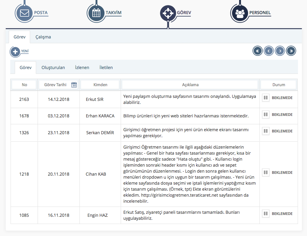Görevlerin durumlarını ve içeriklerini görüntüleyin.