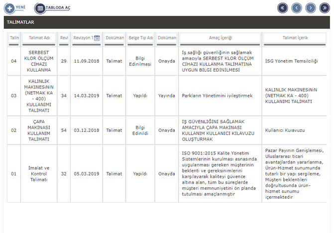 Kalite belgelerinizi, Kalite dokümanlarınızı, düzeltici ve önleyici faaliyetlerinizi, talimatlarınızı ve prosedürlerinizi Kalite Yönetim Sistemi’nize göre takip edebilir ve yönetebilirsiniz.
