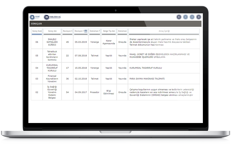 Kalite dokümanlarınızı, sorumlu birim ve süreç bazında takip edebilir ve revizyon yönetimini yapın.