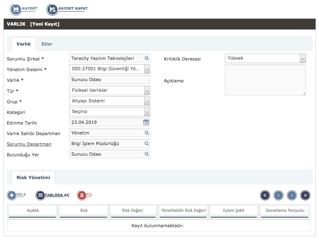 Verinin korunmasına yönelik aldığınız önlemleri seçin. Denetleme periyotlarını belirtin. Bu önlemi almakla sorumlu departman seçin.
