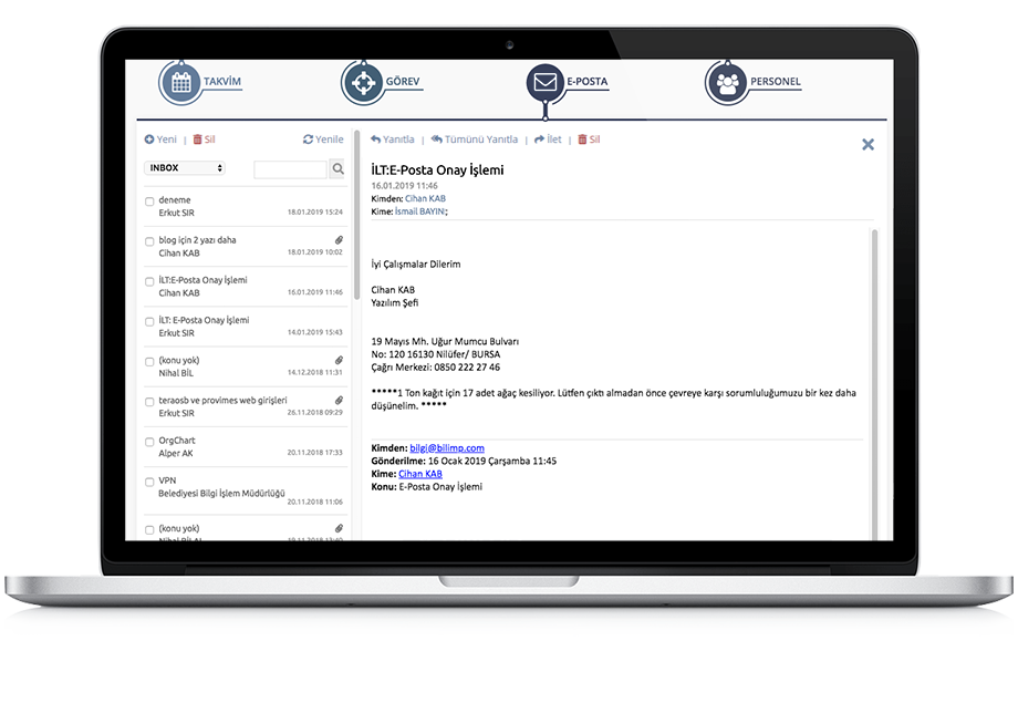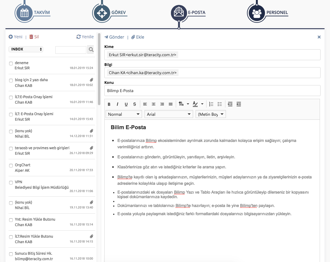 E-postalarınıza Teraosb ekosisteminden ayrılmak zorunda kalmadan kolayca erişim sağlayın; çalışma verimliliğinizi arttırın.