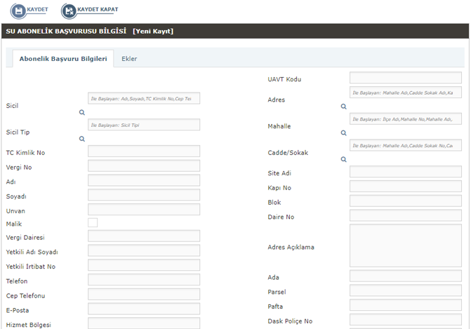 Abone kayıt işlemleri, katılımcı firmanın sicil numarasını otomatik oluşturma, mülkiyet durumu, tahsis durumu, adres vb. bilgileri girin ve listeleyin.