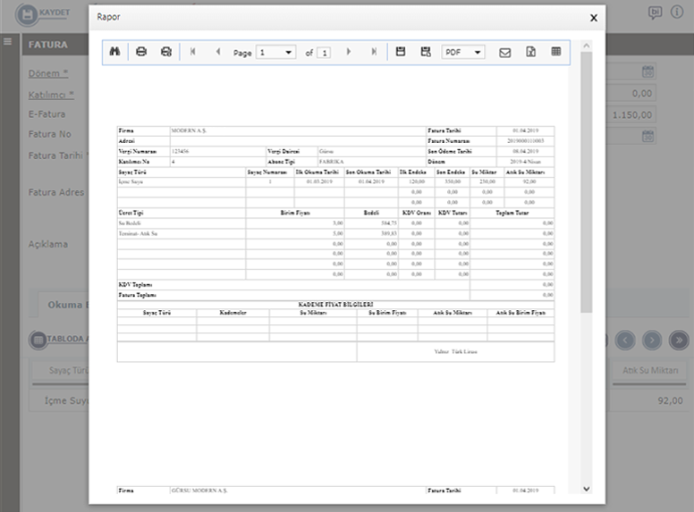 Faturaları sistemden dışarı alıp yazıcıdan çıktı alın. Fatura üzerinde aboneyle ilgili tüm bilgileri görün.