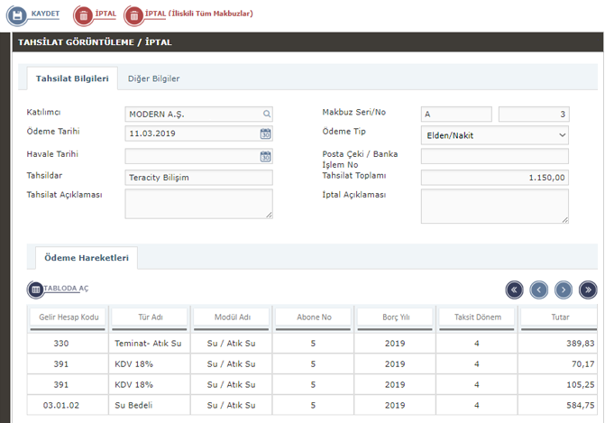 Tahsilatları görüntüleyebilir ve tahsilat iptalini gerçekleştirebilirsiniz.
