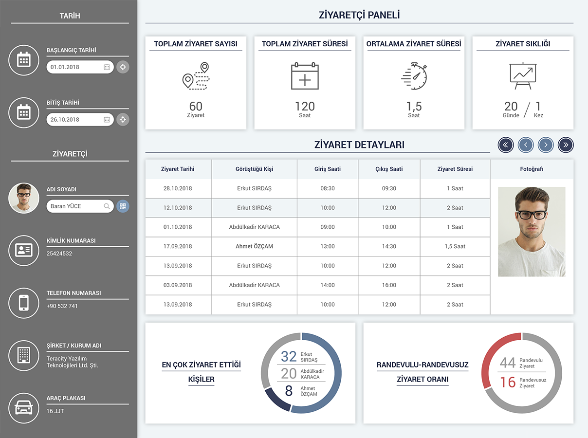 Detaylı Ziyaret ve Ziyaretçi Analizleri ile güvenlik ve verimliliğinizi arttırın.